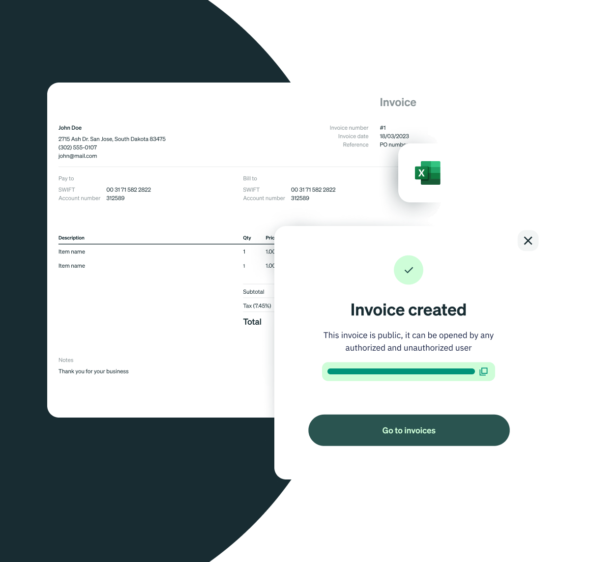 Need to get paid fast? Create invoices right in your app to easily send to clients, so you get paid for your services more quickly. Fill in the service details, and send the invoice to your customer right away. Or save as a draft and come back to it later!